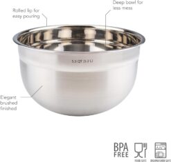 Tovolo Stainless Steel Mixing Bowl (5.5 Quart) – Kitchen & Home Essential for Food Storage, Serving, Salad, Food Prep, Baking, & Cooking / Dishwasher Safe