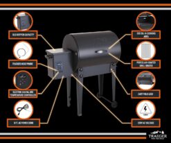 - Compact and Efficient with Easy Setup – The Tailgater has an 8 lbs. pellet hopper, porcelain-coated grill grates for easy cleaning, and quick heat-up using a 120V AC power source.