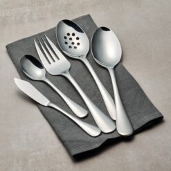 Appropriately named, our Classic Flatware Set forged in heavy 18/10 stainless steel shows off a timeless look to match any table-or occasion. This 45-pieceSet has everything you need to set a table for eight and serving utensils that match. Made with the quality you’ve come to expect from us, the Classic set stands out, thanks to the elegant teardrop-shaped edges that decorate the pieces. Symmetrical spoons, forks crafted for the mouth with polished tines on the inside, and serrated dinner knives built for solid durability create a flatware set that can stand up to even the busiest table.