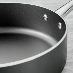 - Includes: 8″ sauté pan, 10″ sauté pan, 4-qt. deep sauté pan with lid and helper handle, 2-qt. saucepan with lid, 3-qt. saucepan with lid, 6-qt. stock pot with lid, Stainless-steel steamer basket (fits 3 qt. saucepan)
