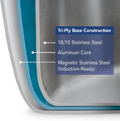 - Premium Tri-Ply clad construction (18/10 stainless steel, aluminum core, magnetic stainless steel)