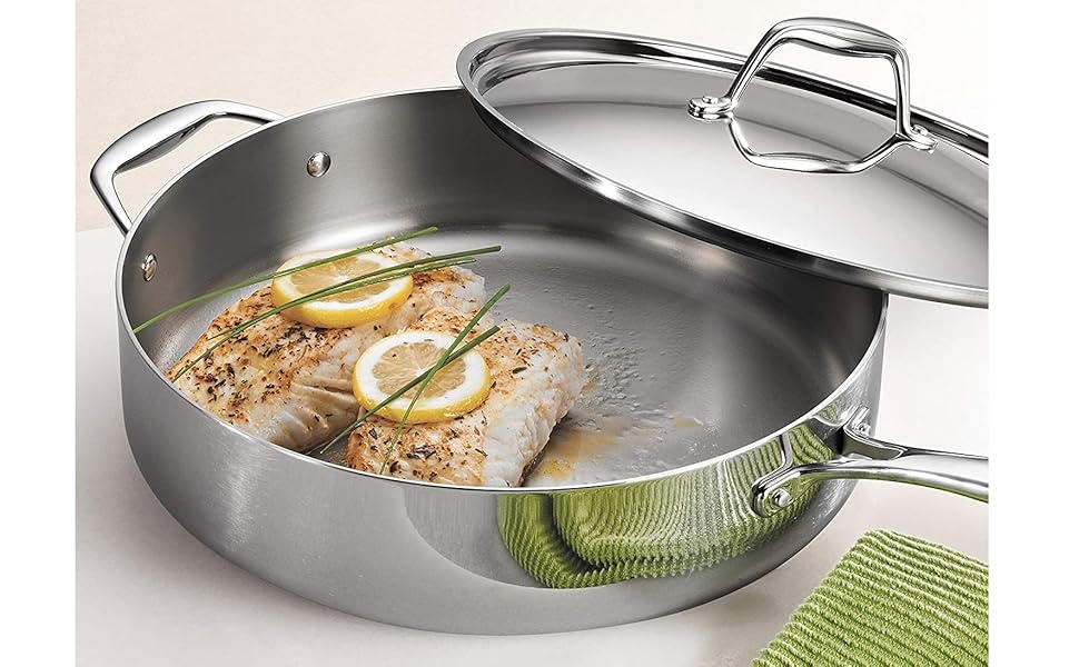 - Premium Tri-Ply clad construction (18/10 stainless steel, aluminum core, magnetic stainless steel)