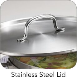 - Stainless steel Lid; Riveted cast stainless steel handles