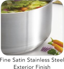 Tramontina pro-line 9 qt. Stainless steel Dutch oven is ideal for making large batches of stew, soups, vegetables and seafood. Its durable 18/8 stainless steel impact-bonded construction features an attractive, fine satin finish with mirror polished accents, and a tri-ply base that provides quick and even heat distribution for exceptional cooking performance on induction, gas, electric, and ceramic glass cooktops. The stainless-steel handles provide added support when handling a filled pot. This Dutch oven is NSF certified and dishwasher-safe for convenient clean up.