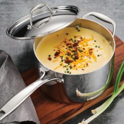 Tramontina’s tri-ply clad cookware is a valuable investment, which will prove its worth each time it is used. The tri-ply clad construction provides heat from all sides; not just the bottom, while the 18/10 precision-fitted, stainless steel lids help to lock in nutrients, and the ergonomically designed, cast stainless steel handles are riveted for stability and added support. Tramontina’s Tri-Ply Clad cookware is compatible with all cooktops – including induction, and is oven-safe up to 500F / 260C. Designed to withstand repeated usage even in the most demanding kitchens, this cookware is ideal for home and professional cooks who want the utmost in quality and performance.