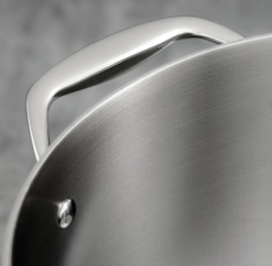 - Precision cast riveted handles and mirror-polished stainless-steel lid