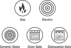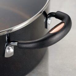 Experienced and inexperienced cooks can agree, a dutch oven is a kitchen essential for slow cooking, steaming, and baking. The Tramontina “Pots & Pans” 5 Qt Aluminum Nonstick Covered Dutch Oven will easily become your most used appliance due to its incredible versatility. Its heavy-gauge construction allows for a reliable uniformity across the pan, while the heat- and shatter-resistant tempered glass lid with stainless steel rim and soft-touch lid knob helps keep the heat in to achieve the perfect temperature. Its durable metallic black porcelain enamel exterior ensures years of use and adds a contemporary flair to your kitchen. Clean-up is made easy thanks to the metal utensil safe, copper speckled nonstick interior finish. This Dutch Oven also has riveted, soft-grip silicone handle to help cooks avoid dropping and spilling the dish they gave their all. The Tramontina “Pots & Pans” 5 Qt Aluminum Nonstick Covered Dutch Oven is dishwasher safe, compatible with gas, electric and ceramic glass cooktops, is oven-safe up to 350°F / 176°C, and includes a lifetime warranty. Made in China.