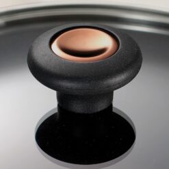 - Heat- and shatter-resistant tempered glass lid with stainless steel rim