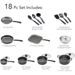 Tramontina Primaware 18 Piece Non-stick Cookware Set, Steel Gray