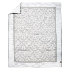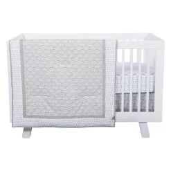 The Art Deco Collection by Trend Lab brings a touch of sophistication to any nursery with a glamourous mix of retro patterns in a soft gray palette. Prints feature a classic art deco sweeping curve scallop mixed with bursts and mini dots, and detailed in our popular Paloma gray on a crisp white background. The soothing gray color palette brings Art Deco into the modern age and can be easily accented for decorating versatility in any nursery. Set includes: Quilt, Crib Skirt and Fitted Crib Sheet.