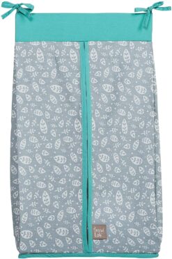 Changing Pad Cover is soft 100% cotton and features a jungle parade scene in tonal grays and golden orange that are accented with a soft teal, muted lime and white. Changing pad cover is fully elasticized to offer a sleek tailored fit on standard 16″ x 32″ contoured changing pads.