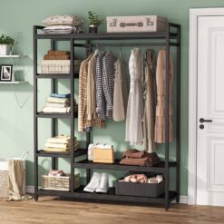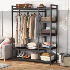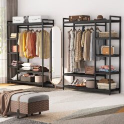 Tribesigns Cynthia Black Garment Rack with Storage Shelves and Hang Rod