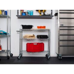 TRINITY NSF-certified, heavy-duty, commercial-grade EcoStorage 3‐Tier Cart is perfect for any industrial, home, garage or kitchen use. It can easily hold and maneuver any of your boxes, office products, tools and everything in between. Assembly requires no tools, and a slip-sleeve locking system allows the shelves to be adjusted in 1 in. increments to accommodate a variety of item sizes and shapes.