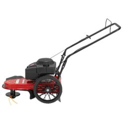 The Troy-Bilt TB22TMC trimmer mower is designed with a broad 22 in. reach and wide .155 in. trimming line that helps clear weeds and heavy brush with minimal effort. The off-set trimmer head is engineered to make working along fence lines and other tough-to-reach places quick and easy. Large rear wheels help maneuver the yard quickly, and ten extra trimming lines are included for convenience.