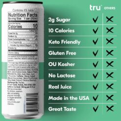 Drink when you need a clean boost. Consume one (1) full can from the Tru Sparkling Water Performance Sampler for hours of energy. Each drink contains 100 mg, 150 mg, and 200 mg of caffeine respectively (1-2 cups of coffee).
