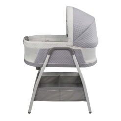 Lull your baby to sleep and give yourself some much-deserved rest. With the TruBliss Journey 2-in-1 Bassinet, get your infant to sleep through the night and add a beautiful touch to your nursery. This sleeper crib integrates cozy sleep technology designed to protect your baby and encourage sleeping through the night. Bring a beautiful traditional design to your nursery and rely on the convertible design of this infant crib to accommodate all your child’s needs. No matter if your little one is sleeping at home or on the go, trust the both by-the-bed sleeper mode and the portable sleeper mode to lull them safely to sleep. With a padded, vinyl-covered foam mattress pad and 2 printed fitted sheets, keep your kiddo cozy. Invest in a bassinet that takes everything into consideration. With intuitive electronic features, such as a nightlight, vibration, and sounds, you won’t have to rely on parental instincts alone to get your baby to lie down for a nap. No matter how you soothe your baby, the calming nature noises, womb sounds, guitar lullabies, and classical music will be sure to get your baby to sleep through the night. Prioritize your baby’s sleep with the TruBliss Sleeper. This crib was manufactured in 2011 or later and complies with the new federal safety standards issued by the CPSC.