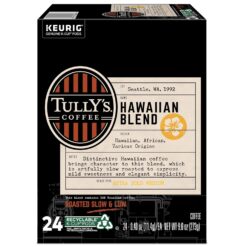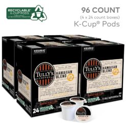 Tully’s Coffee Hawaiian Blend Keurig Single-Serve K-Cup Pods, Medium Roast Coffee, 96 Count (4 Packs of 24)