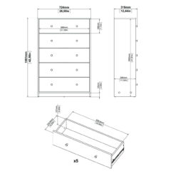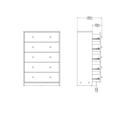 Organize your wardrobe with the Studio 5 Drawer Chest. The simple, sophisticated design features five drawers with high sides, clean lines and a smooth finish. Equally suited for the kid’s room, master bedroom or even entry way, the chest is a versatile piece of furniture, offering roomy storage for all your organizational needs. The Studio 5 Drawer Chest is traditional Danish design and produced with a fade resistant foil surface, which is easy to clean. Combine this chest with coordinating Studio items to complete the look