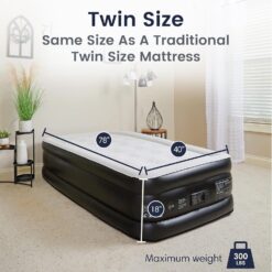- Unrivaled Comfort: Experience unmatched comfort on the OhGeni air mattress, a meticulously designed 18″ deep Twin size inflatable bed (78″L x 40″W x 18″Th) with a built-in 110V electric air pump for quick and effortless full-body support. The air coil support system provides even and secure weight distribution from head to toe, ensuring maximum relaxation for adults and durability for the whole family.