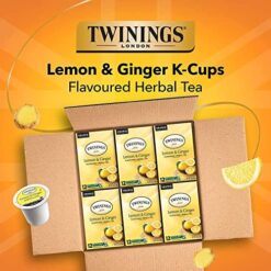 Twinings Lemon & Ginger Herbal Tea K-Cup Pods for Keurig, Naturally Caffeine Free Tea, 12 Count (Pack of 6)
