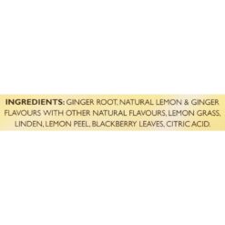 Ingredients: tea; ginger root, natural flavours, linden, lemon peel, blackberry leaves, lemon grass, citric acid