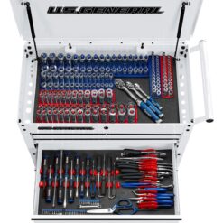 - Automatic drawer locking and integrated barrel lock system to keep tools safe and secure