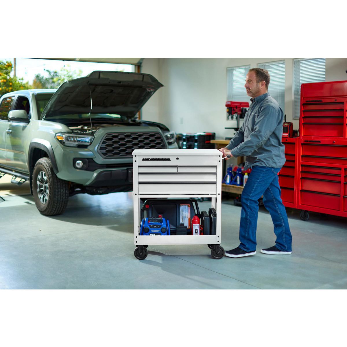 - Four drawers and top compartment for easy organization of hand tools, power tools, and more