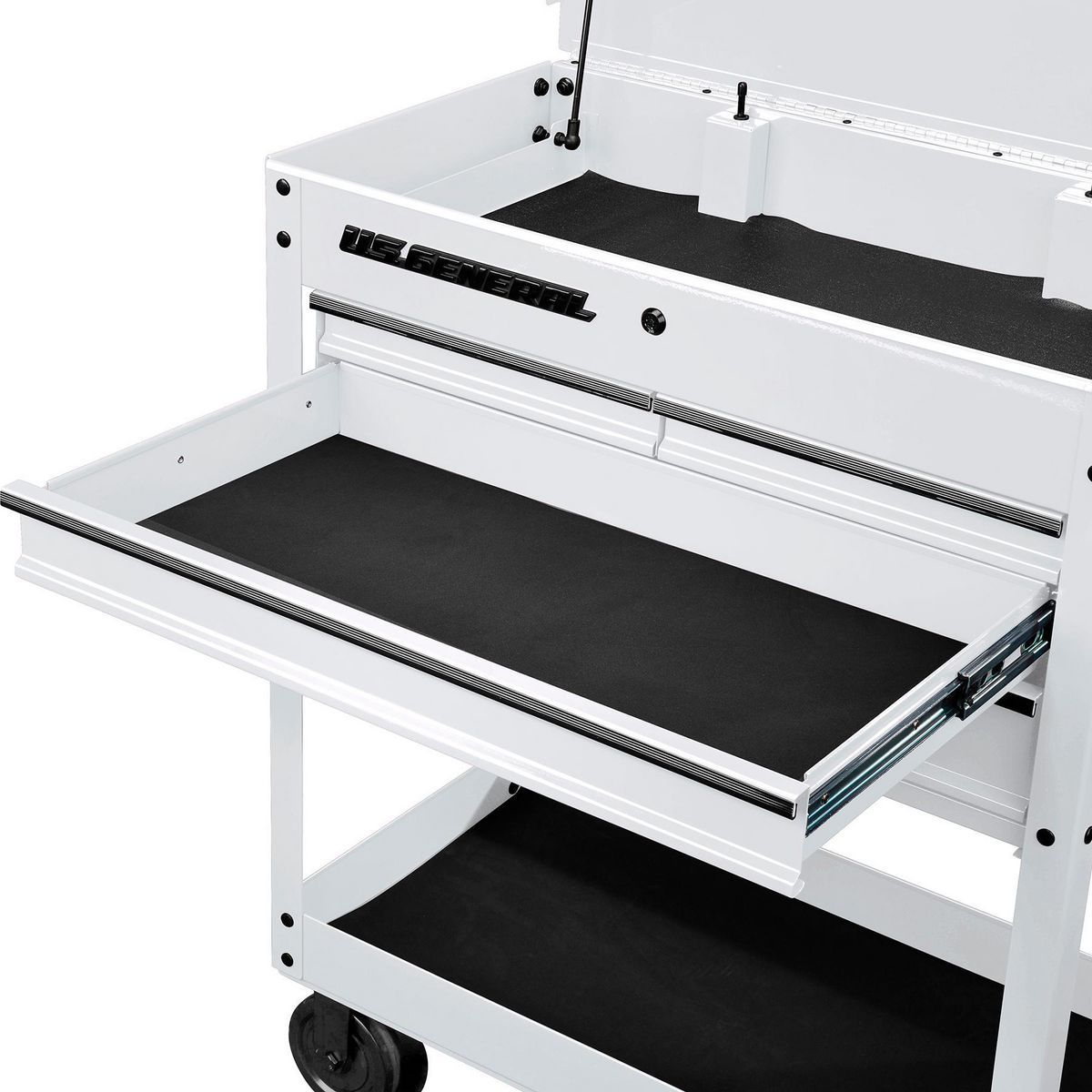 - Automatic drawer locking and integrated barrel lock system to keep tools safe and secure
