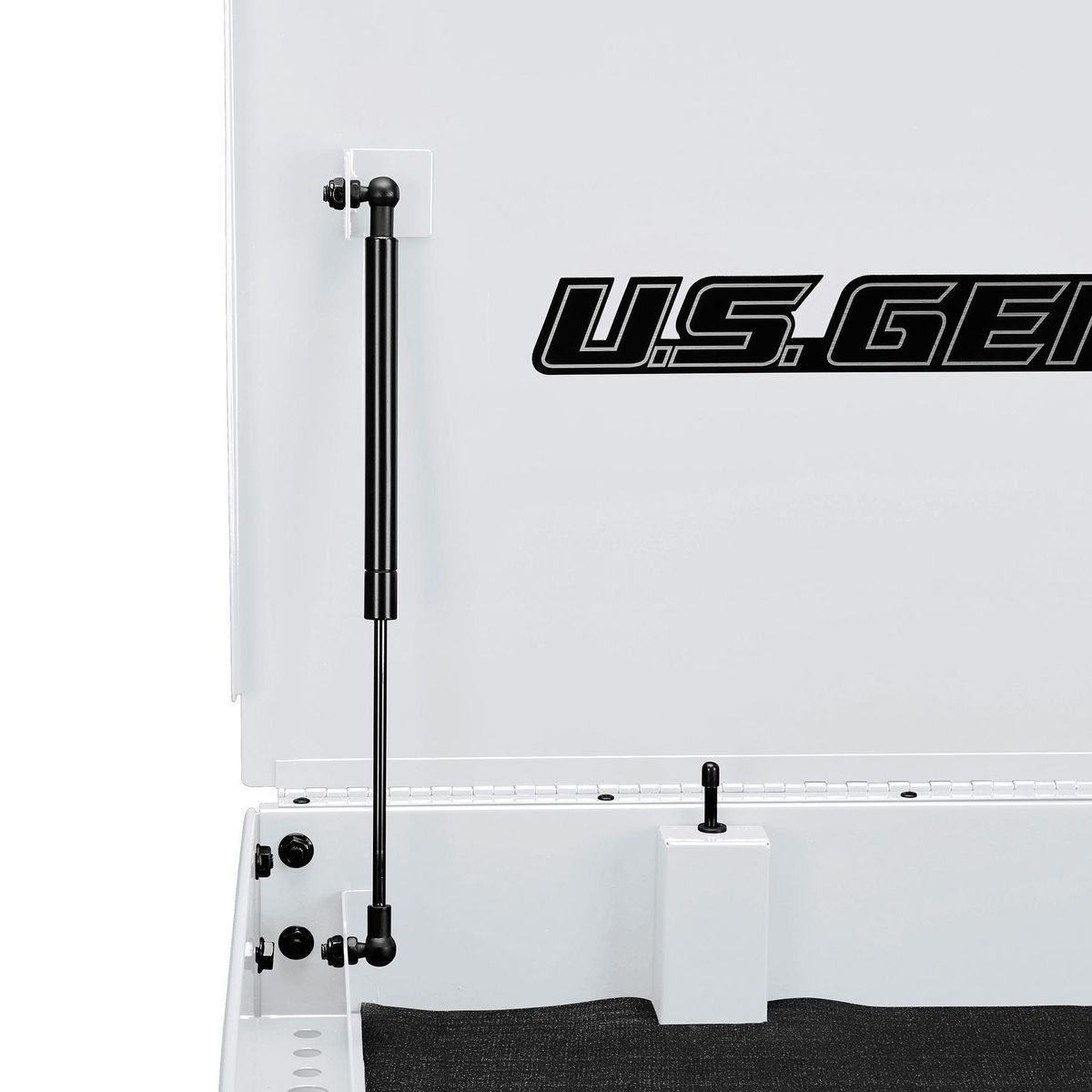 - Gas struts provide assisted lid opening to 90°