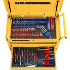 The U.S. GENERAL® 30 in., 4-Drawer Tech Cart is optimized for tool storage with 12,600 cubic inches of total storage volume, 4500 cubic inches of lockable storage, and a weight capacity of 580 lb. This cart has rolled-edge drawers, nonslip drawer liners, side can holder, and integrated pry bar holders for use in local automotive shops or your own garage. All U.S. GENERAL® carts are rigorously tested in our state-of-the-art testing facility in the USA to meet the highest quality standards.