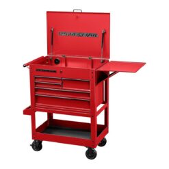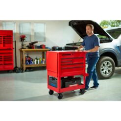 - 5 drawers and 1 side can-holder for easy organization of hand tools, power tools, and more