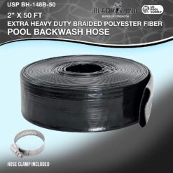 - Black Rhino 2 Inch (51mm) Diameter By 50 Foot (15.2M) Long Swimming Pool Backwash Hose with Metal Hose Clamp.