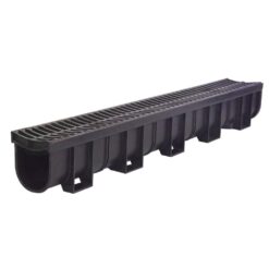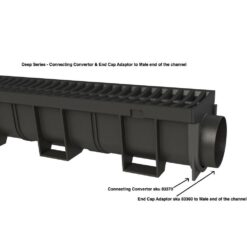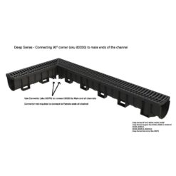 Because of their high-profile design, the Deep Series Trench Drains are perfect for high water flow areas in landscape water drainage projects. Optimal for deviating rainfall water and flowing or stagnant water on property where lots of water collects and pools. Adjacent to homes or at the bottom of sloped areas; Trench Drains provide flexible drainage solutions. Residential uses include yard water drainage for small-grassed suburban properties or large acres of land and farm areas. Easily collect and disperse water from patio areas or pool sides. Commercial water drainage systems allow safe and efficient drainage for office buildings, property, or factory interiors. The concave grates are ideally designed to distribute weight to the drain edges and the larger slats increase water flow while still providing protection from debris or traffic. The Trench Drain is visually appealing due to its sleek, yet sturdy, construction and adds an aesthetic touch it its surroundings. Available accessories include end caps, adaptor pieces, convertor pieces, leaf domes, 90 degree corner pieces, tee pieces, catch basins, slim pits, storm water pits, and alternative grates.