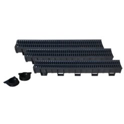 - Includes 3 lengths of channel and grate, 2 end caps and 1 convertor