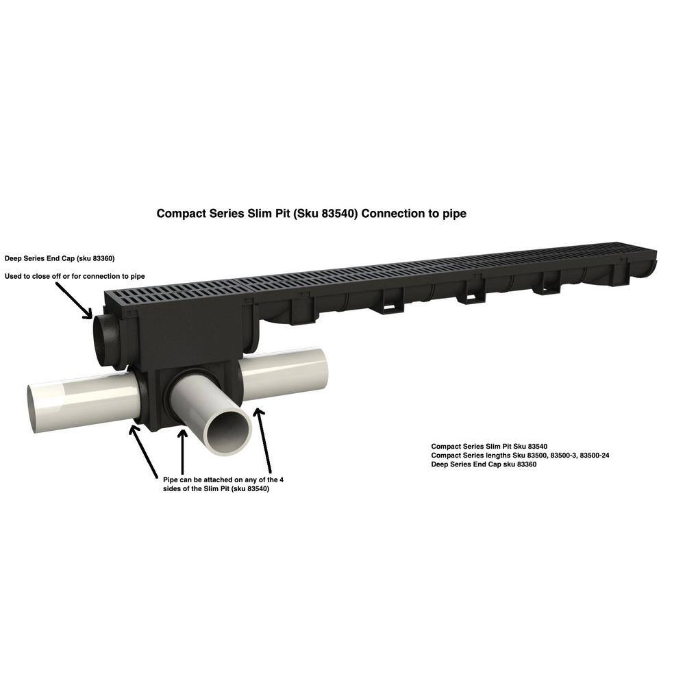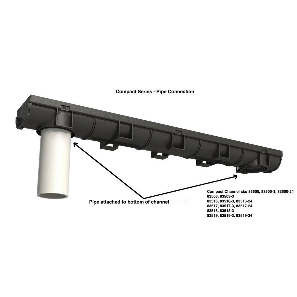 U.S. TRENCH DRAIN 83503 Compact Series 5.4 in. W x 3.2 in. D x 39.4 in. L Black Channel and Stainless Steel Grate with Bottom Outlet
