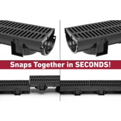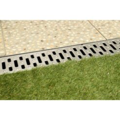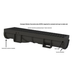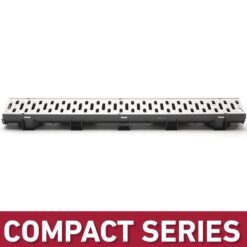 Because of their low-profile design, the Compact Series Modular Trench Drain systems are perfect for low water flow areas in landscape water drainage projects. Optimal for deviating rainfall water and flowing or stagnant water on property where water tends to collect and pool. Adjacent to homes or at the bottom of sloped areas; Trench Drains provide flexible drainage solutions. Residential uses include yard water drainage for small-grassed suburban properties or large acres of land and farm areas. Easily collect and disperse water from patio areas or pool sides. Commercial water drainage systems allow safe and efficient drainage for office buildings, property, or factory interiors. The flat grates are designed to distribute weight to the drain edges, and the smaller slats are ideal for walking on without worrying about high-heeled shoes getting caught. The bottom of the system contains cut-out section for 3 in., 3.5 in. or 4 in. drainage pipes. The compact Trench Drain is visually appealing due to its sleek, yet sturdy, construction and adds an aesthetic touch it its surroundings. Available accessories include end caps, adaptor pieces, convertor pieces, 90 corner pieces, storm water pits, and alternative grates.