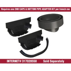 - Built in bottom outlets at both ends of the trench drain to easily connect 3 in. and 4 in. sewer and drain pipe