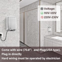 - (5)Plug in Directly(1.8m) or (Hardwired) Access to Power Through Modifying Wiring- Easily Mounted on the Aall and Will Serve Long-term. Perfect for Home and Commercial use, Bathroom, Restaurants, Hotels, School,Air port and Shopping Malls.