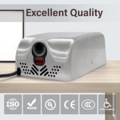 - (3)UL Listed- This stainless steel electric automatic hand dryer standard by UL approved,Over-current and overheat protection, 60s overtime protection.fast Dryers the hands in 10-12 seconds.