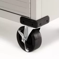 The Seville Classics® UltraHD 2-door Rolling Cabinet is an ultra heavy-duty, steel cabinet with an interior shelf, two locking doors, grab handles and bottom corner bumpers. This roller door cabinet has ample storage space for all your tools, supplies and other belongings. The two locking casters can be adjusted to make the cabinet moveable or stationary. You can roll up the cabinet doors to access the tools, and use the solid hardwood top for effective layout of all supplies.