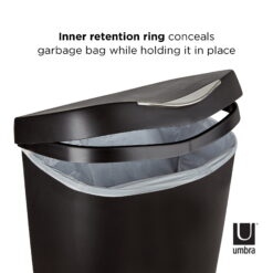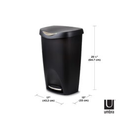 Umbra 13 gal Brim Plastic Step Soft Close Lid Kitchen Trash Can, Black