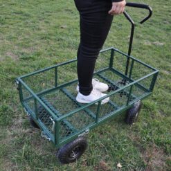 Wagon Garden trucks make it easier to transport firewood, plants, chicken feed, potted soil and honeycombs. The detachable side on the foldable utility wagon increases versatility when carrying larger loads. The practical garden trolley bears 550 lbs. (about 249.5 kg), so it is strong enough to carry heavy work. You don’t have to drag heavy materials to the original place on multiple trips. Heavy reinforced steel frame, 180° steering range handle control and 10 in. (about 25.4 cm) pneumatic tires make this garden utility vehicle stable and ready to help you complete tasks in the yard.