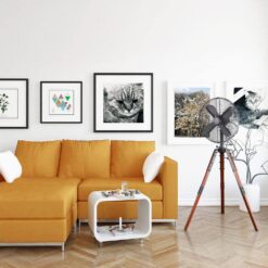 The Star Tripod is a 16 in. oscillating floor fan with a unique artisanal design. It has beautiful strong wooden tripod legs and die cast parts. It has three speeds and is height adjustable and has an adjustable tilting angle. Its width is between 27.5 in. – 29.5 in. and height is between 53 in. – 56 in.