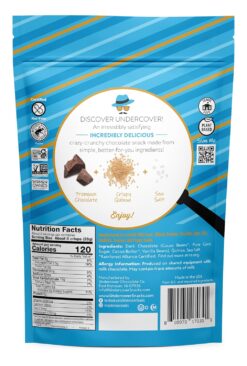 - THE PERFECT CHOCOLATE-TO-CRUNCH RATIO! With a nearly 50/50 ratio of chocolate to quinoa and other healthy inclusions, Undercover is the ideal anytime snack for home, school and work, satisfying everyone from die-hard chocoholics, to gluten-free and allergen families, to fitness and health-conscious consumers, to office warriors needing a satisfying mid-day pick-me-up!