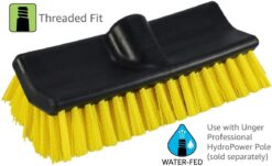 Unger Professional HydroPower Bi-Level Scrub Brush Head, 10″. Unger’s 10-inch HydroPower Bi-Level Scrub Brush features stiff bristles that will tackle tough stains and dirt, providing aggressive scrubbing power with or without water. Its bi-level design offers multiple angles to take on messes. Attach it to Unger’s Professional HydroPower Pole (sold separately) to make cleaning concrete, brick, and decks easy. Can be used with any Unger pole (sold separately). construction, or workmanship.