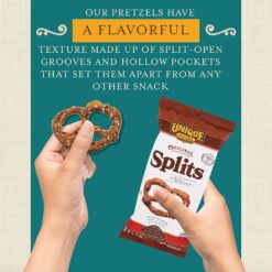 Are you ready to experience something truly amazing? Try Unique Snacks Original Splits Pretzels! Our pretzels are like no other, with a flavor-packed texture that features split-open grooves and hollow pockets. Our innovative baking process precisely matures the pretzel dough to perfection, creating a crunchy and satisfying snacking experience that you won’t find anywhere else.