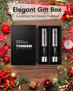 - Premium Stainless Steel: Crafted with premium-grade stainless steel, our electric salt and pepper grinder set is not only durable but also boasts a sleek and stylish appearance that complements any kitchen or dining table