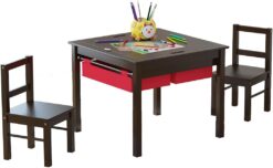 - ASSEMBLED DIMENSION: Kids table and two Chairs Set perfect for toddlers ages 3 and up, Table dimensions:. 25.6″L x 25.6″W x 21″H , Chair dimensions: 11″W x 11.8″D x 21″H .