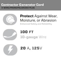 - Cord is water- and flame-resistant, designed for use by contractors and industrial personnel