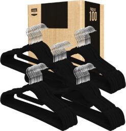 Utopia Home Premium Velvet Hangers 100 Pack – Non-Slip Clothes Hangers with Tie Bar – Black Hangers – Standard Hangers with 360 Degree Rotatable Hook – Heavy Duty Coat Hangers
